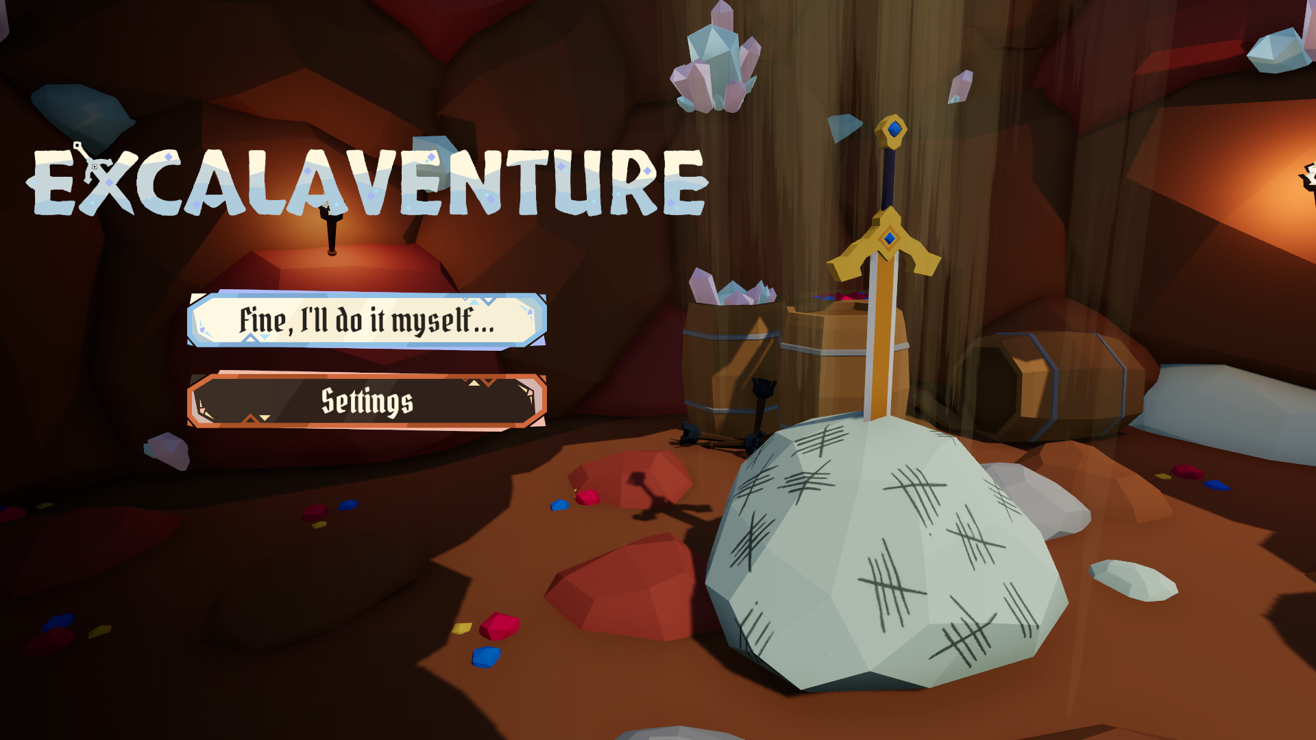 “Excalaventure” is a simple Action-Adventure game where the player assumes control of the legendary sword Excalibur, which after seeing countless would-be rulers fail the simple task of extracting the Sword from the Stone, decides to claim the throne for itself.